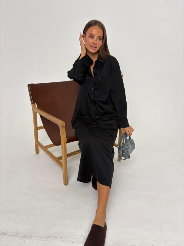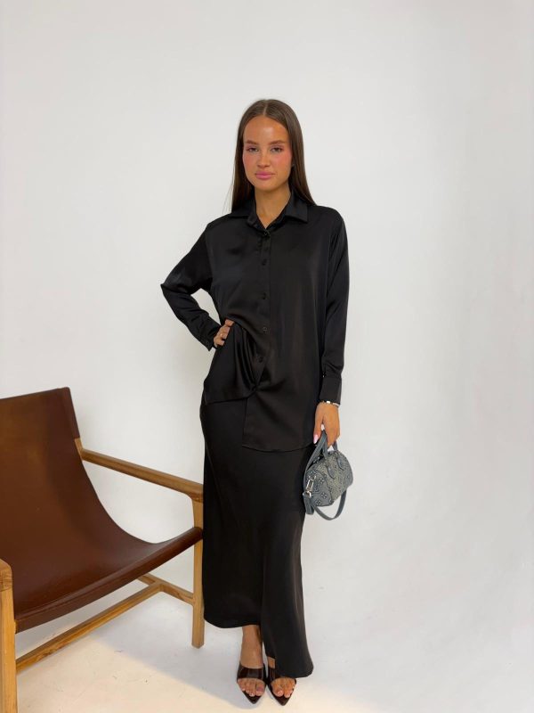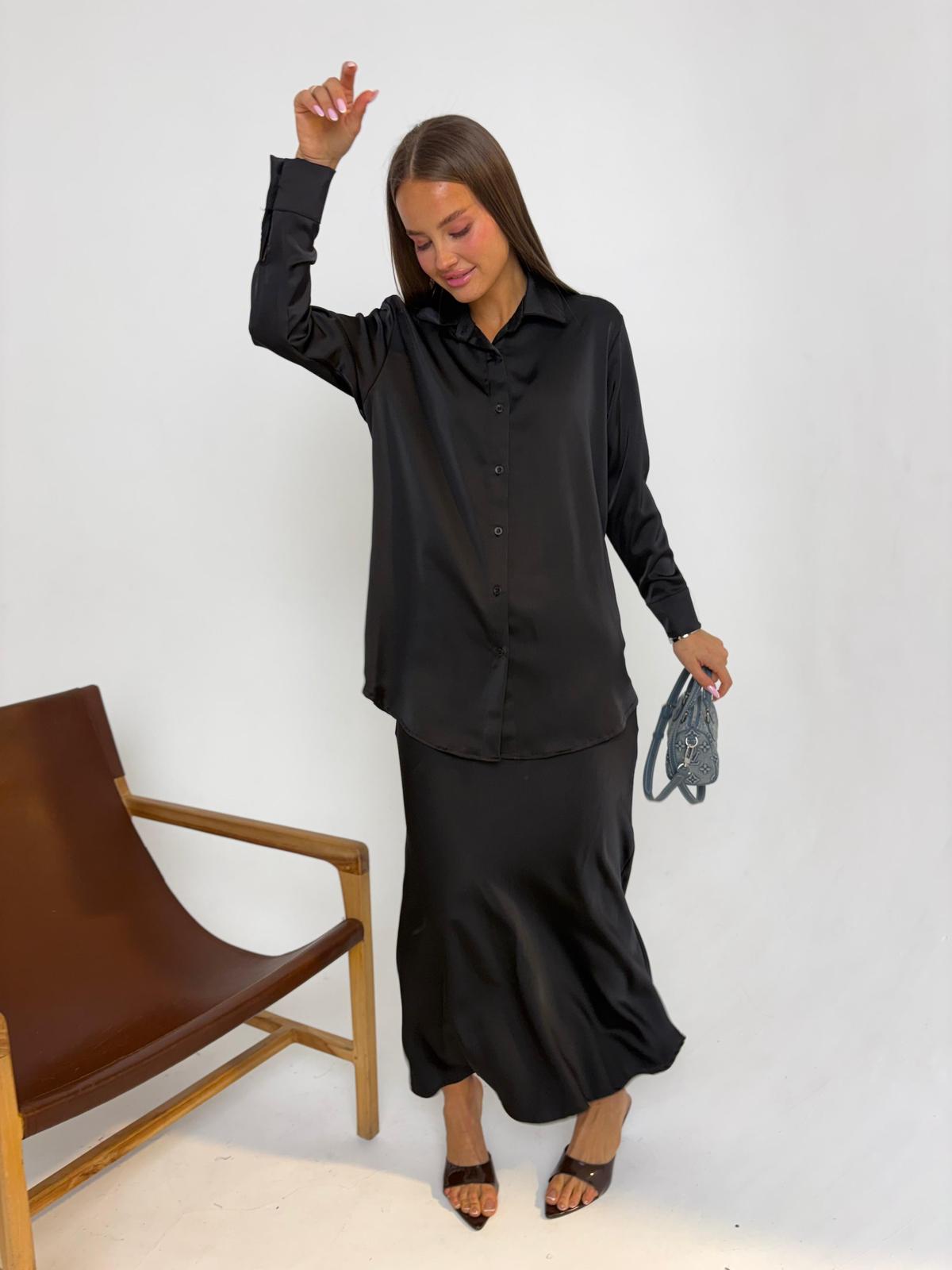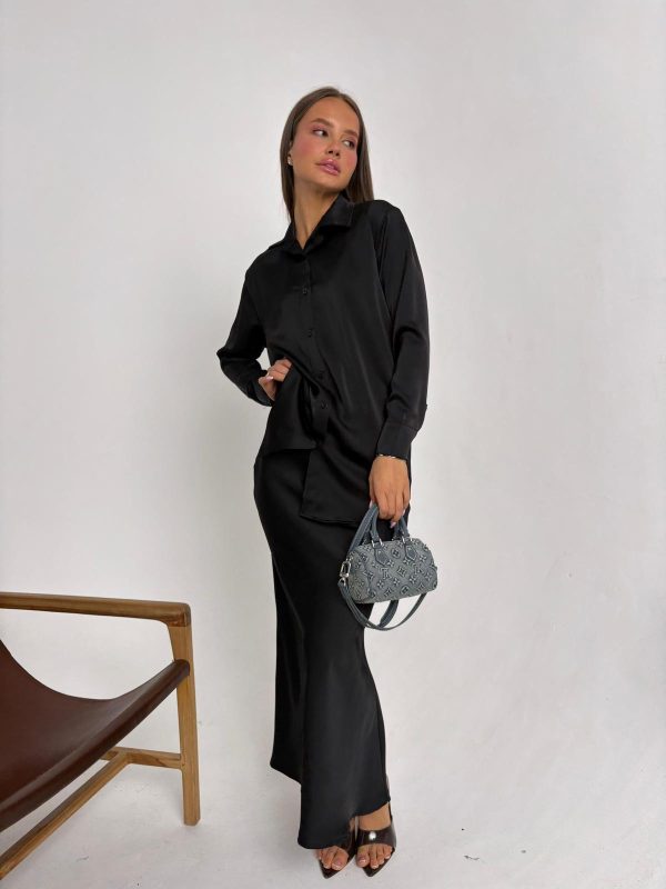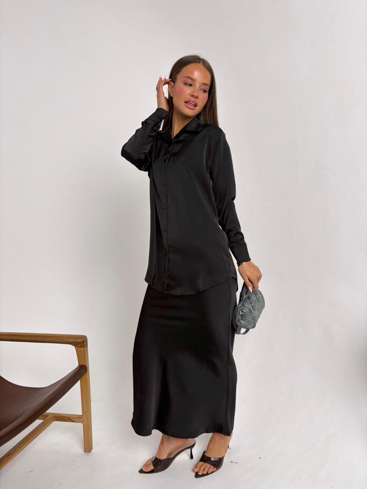 חליפת חצאית סאטן שחור