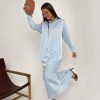חליפת חצאית סאטן תכלת