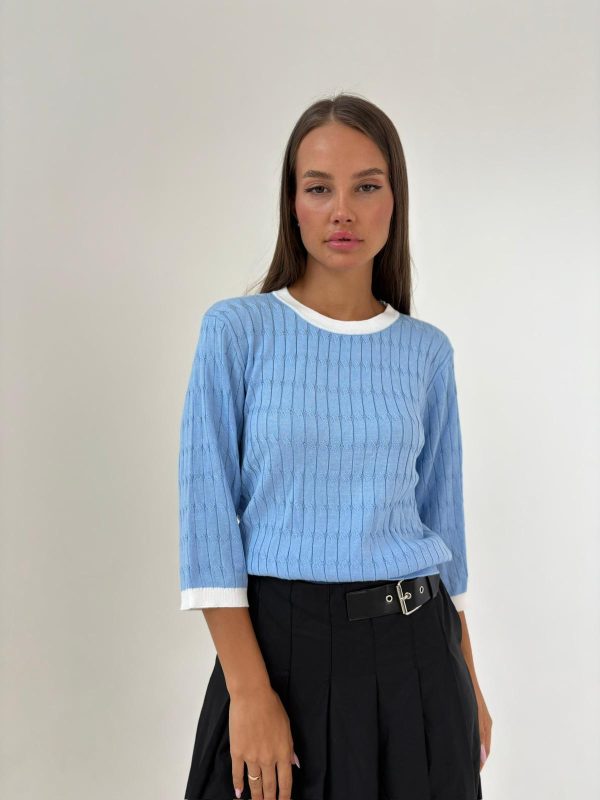 חולצה מבד סריג מעבר, מבד לייקרה נמתח , צווארון ניקי עגול שילוב, שרוולים באורך 3/4, שילוב מנג'ט בידיים ובחולצה. החולצה מגיעה במידה אחת ONE SIZE ומתאימה עד למידה 42-44.
