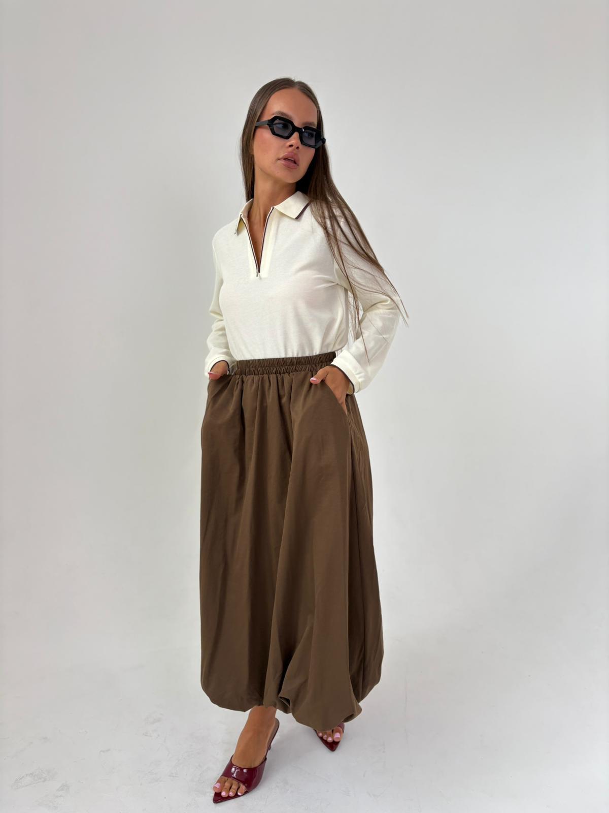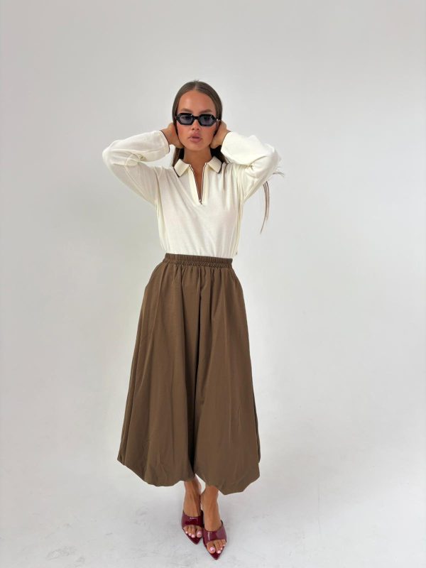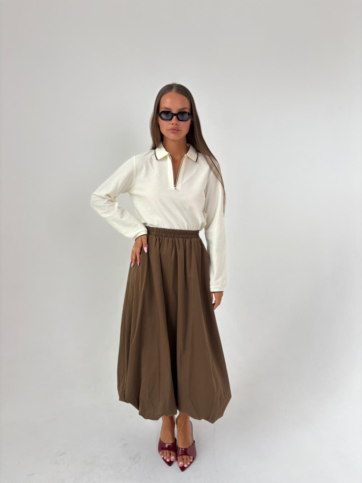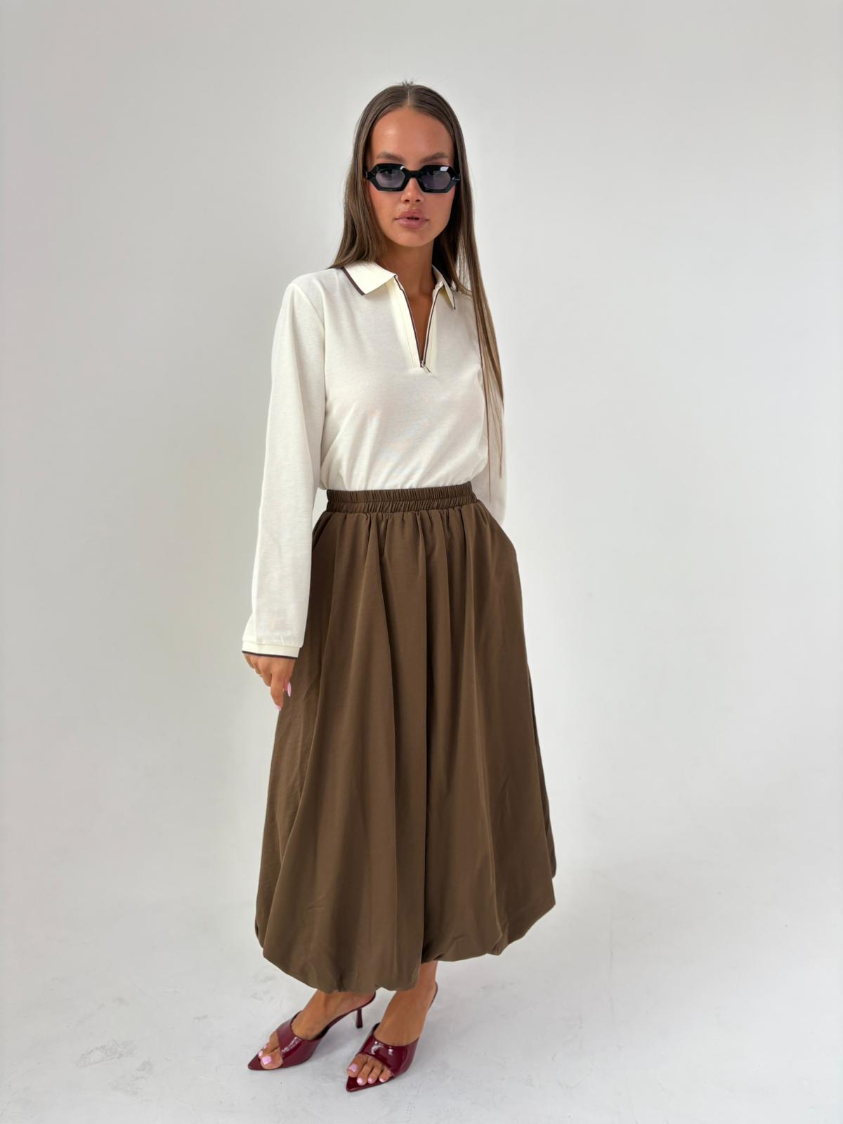 חצאית בלון אריג חום