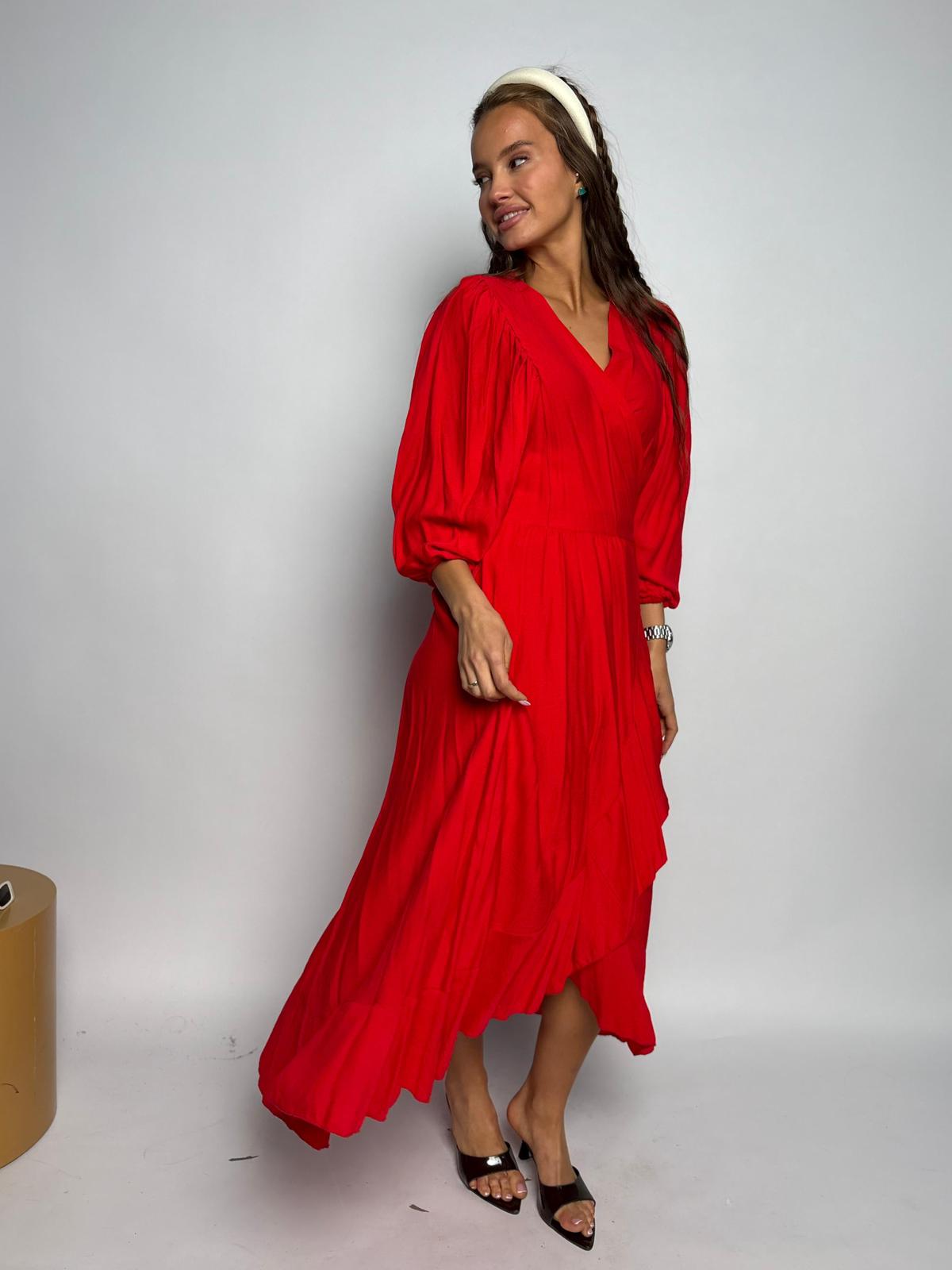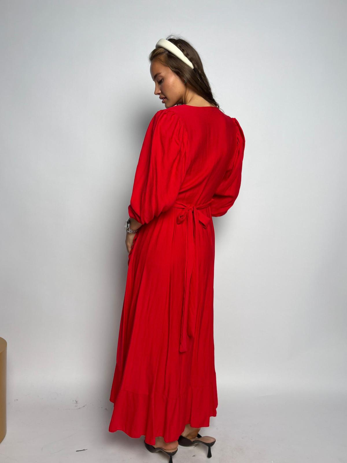 שמלת מקסי מעטפת וולן אדום