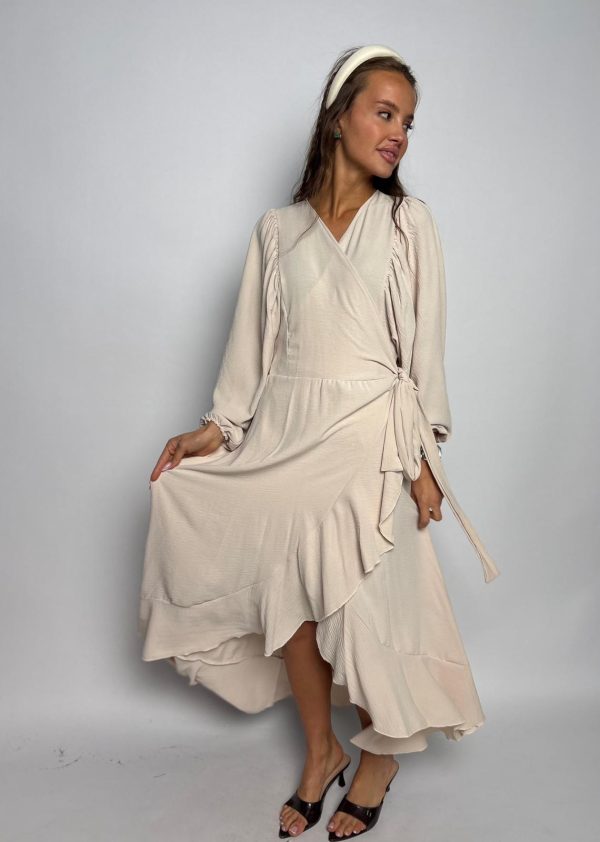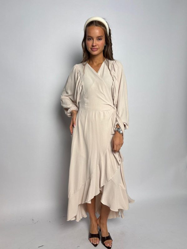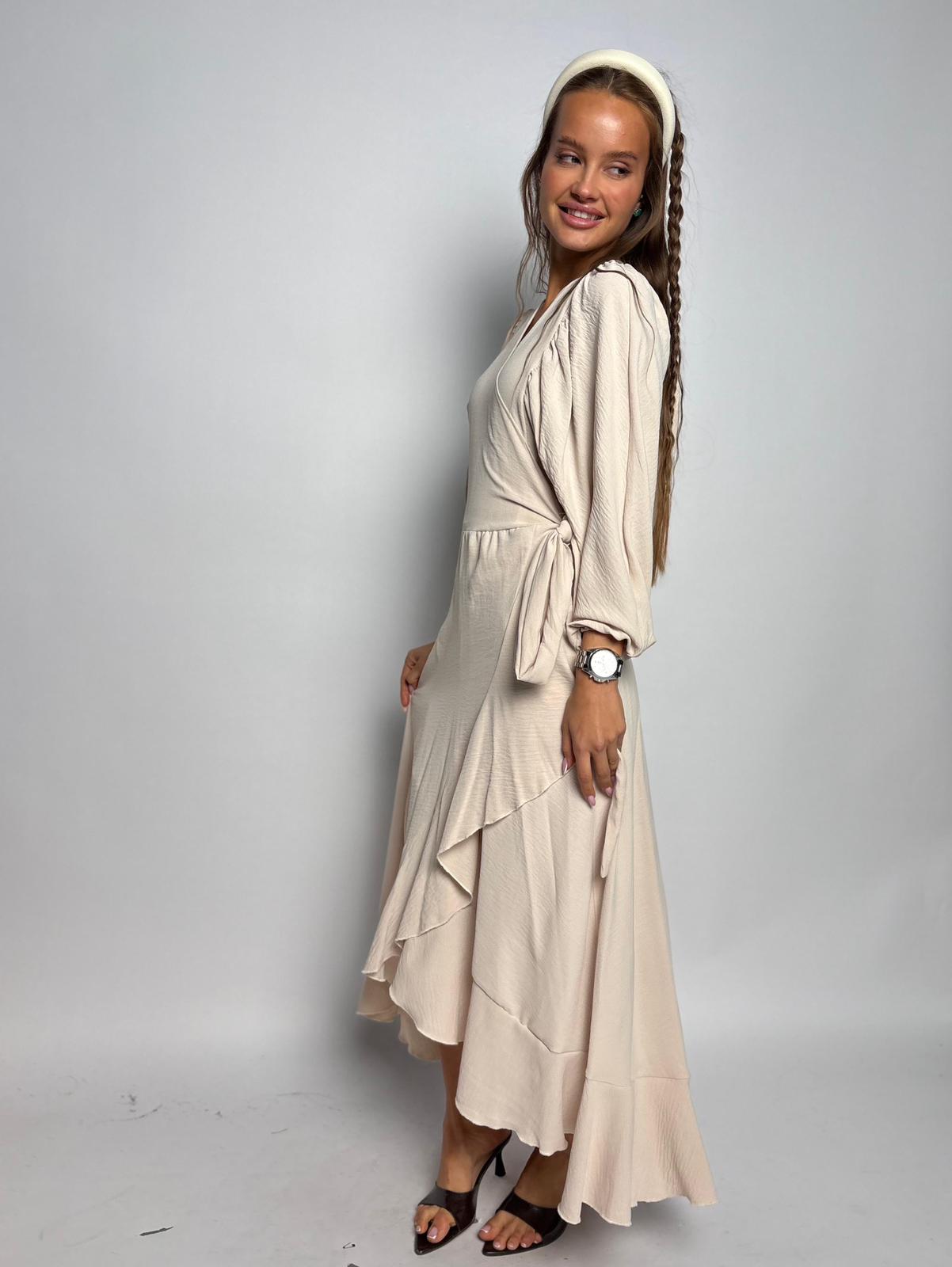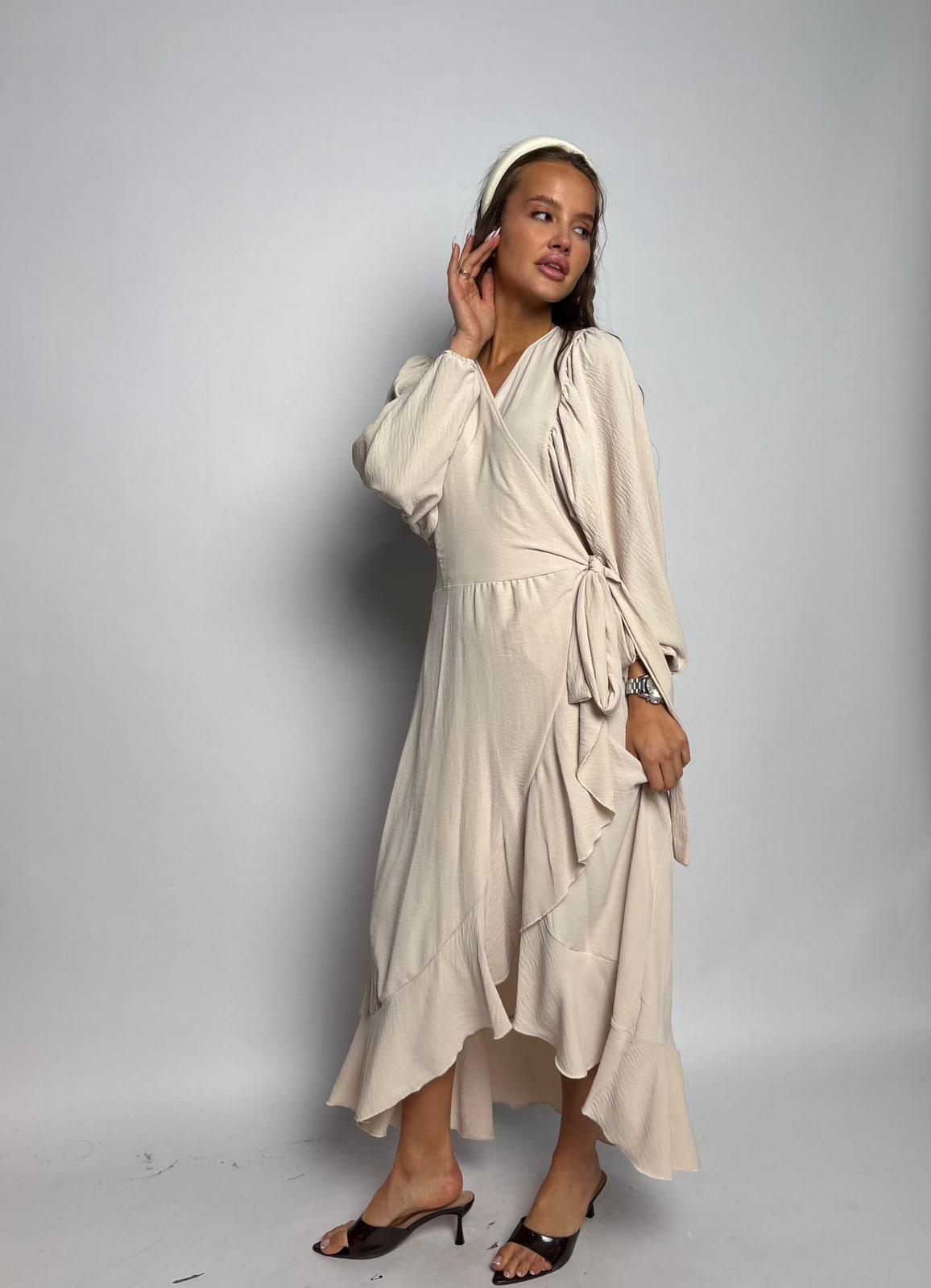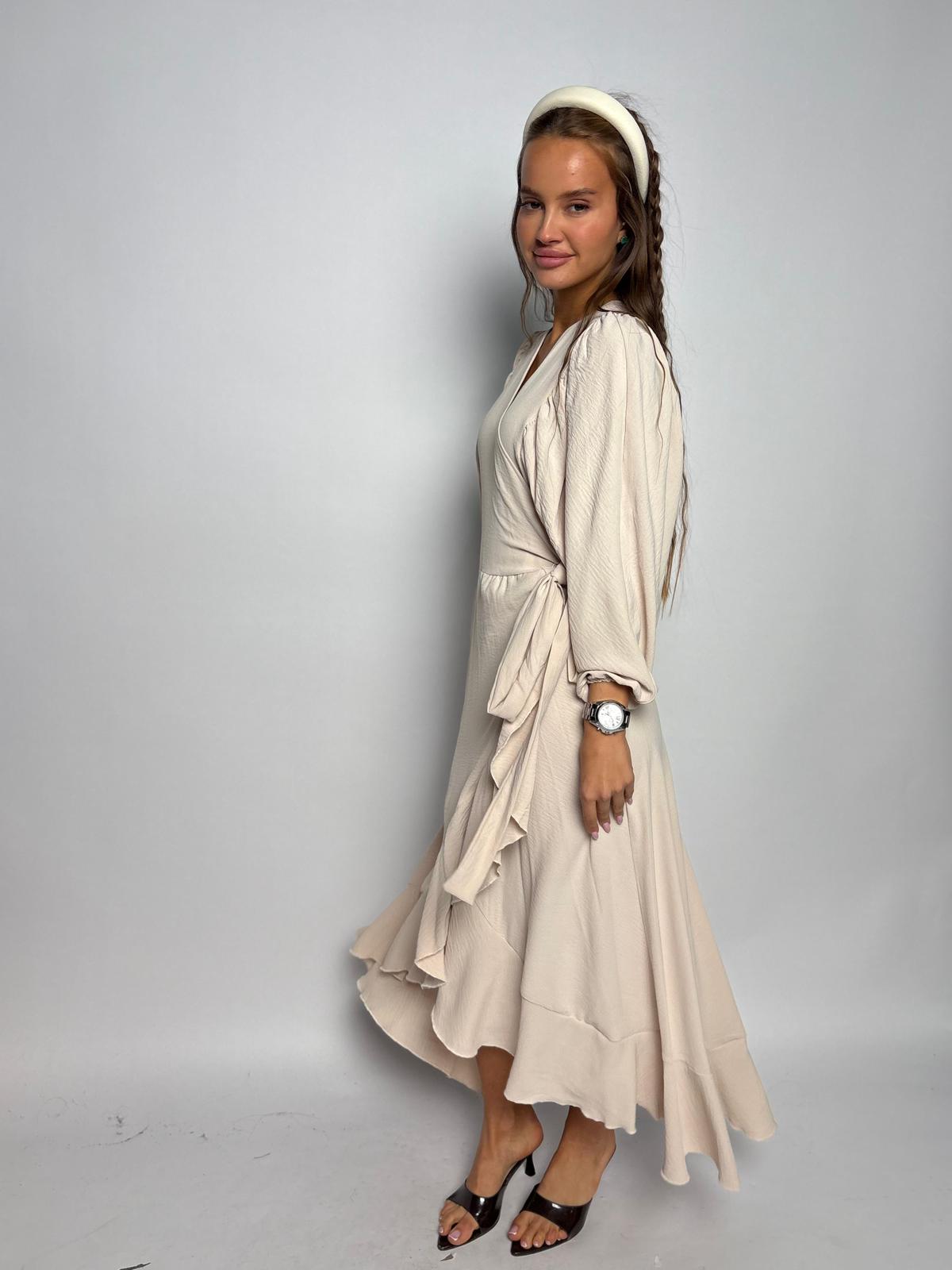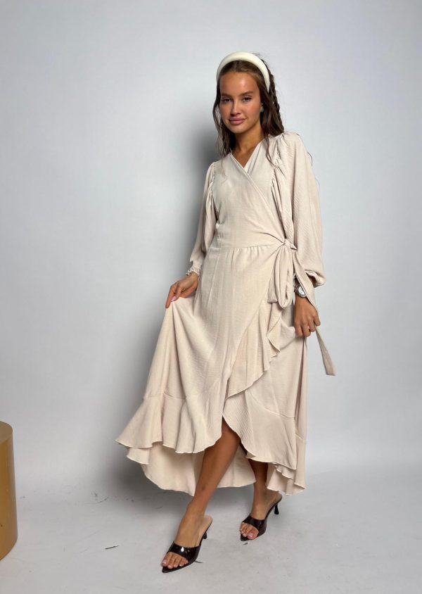 שמלת מעטפת צנועה בגזרת אובר סייז מבד אריג קיצי, שרוולים ארוכים רחבים, בגיזרת עטלף, כיווצים בתפר, כיווצים בכתפיים, סיומת גומי בשרוול, מלמלה לאורך השמלה, חגורה מובנת להידוק השמלה. (השמלה ניתנת ללבישה גם כעליונית). השמלה מגיעה במידות S/M/L/XL ומתאימה עד למידה 44-46.