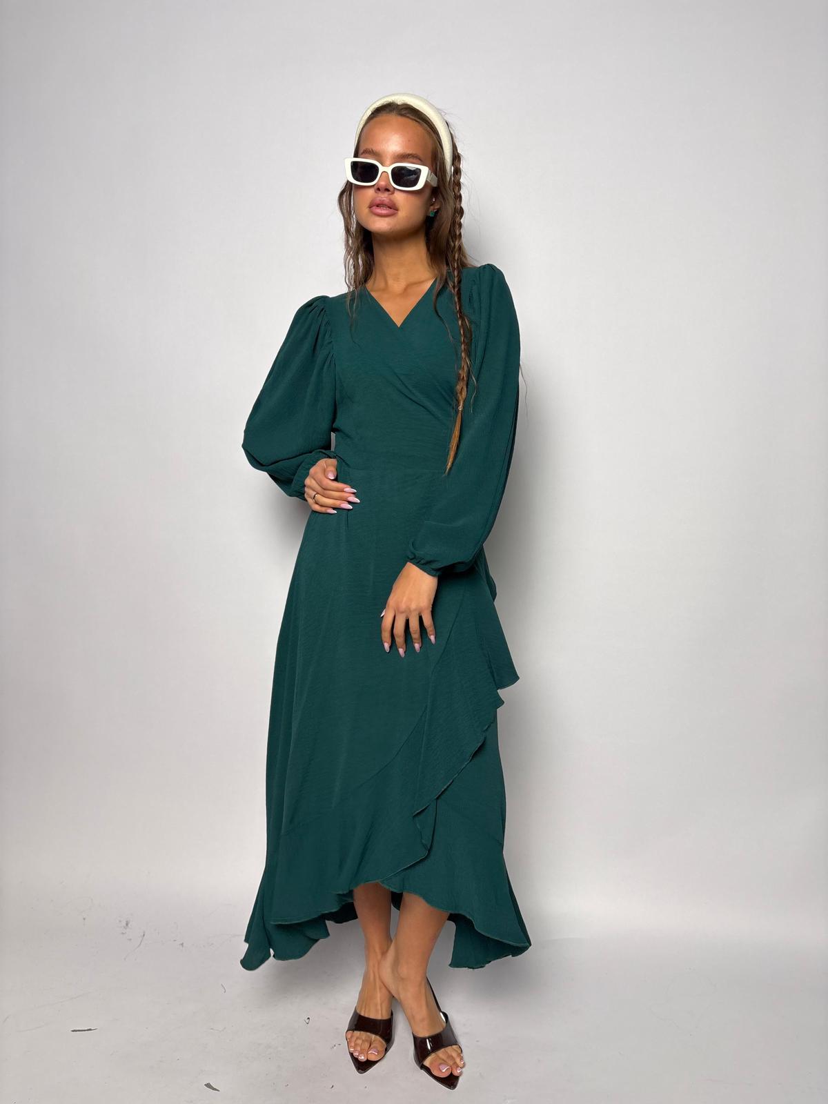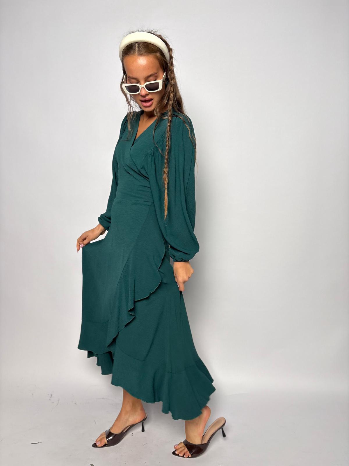 שמלת מקסי מעטפת וולן ירוק בקבוק