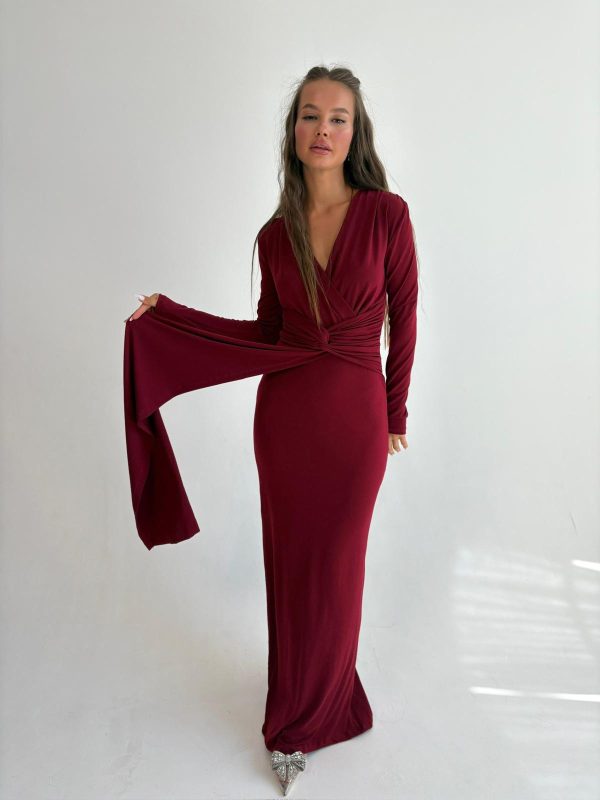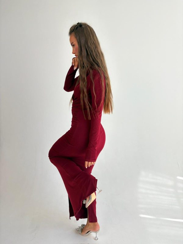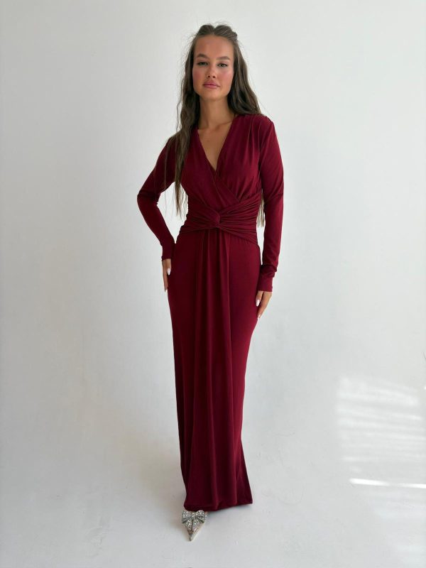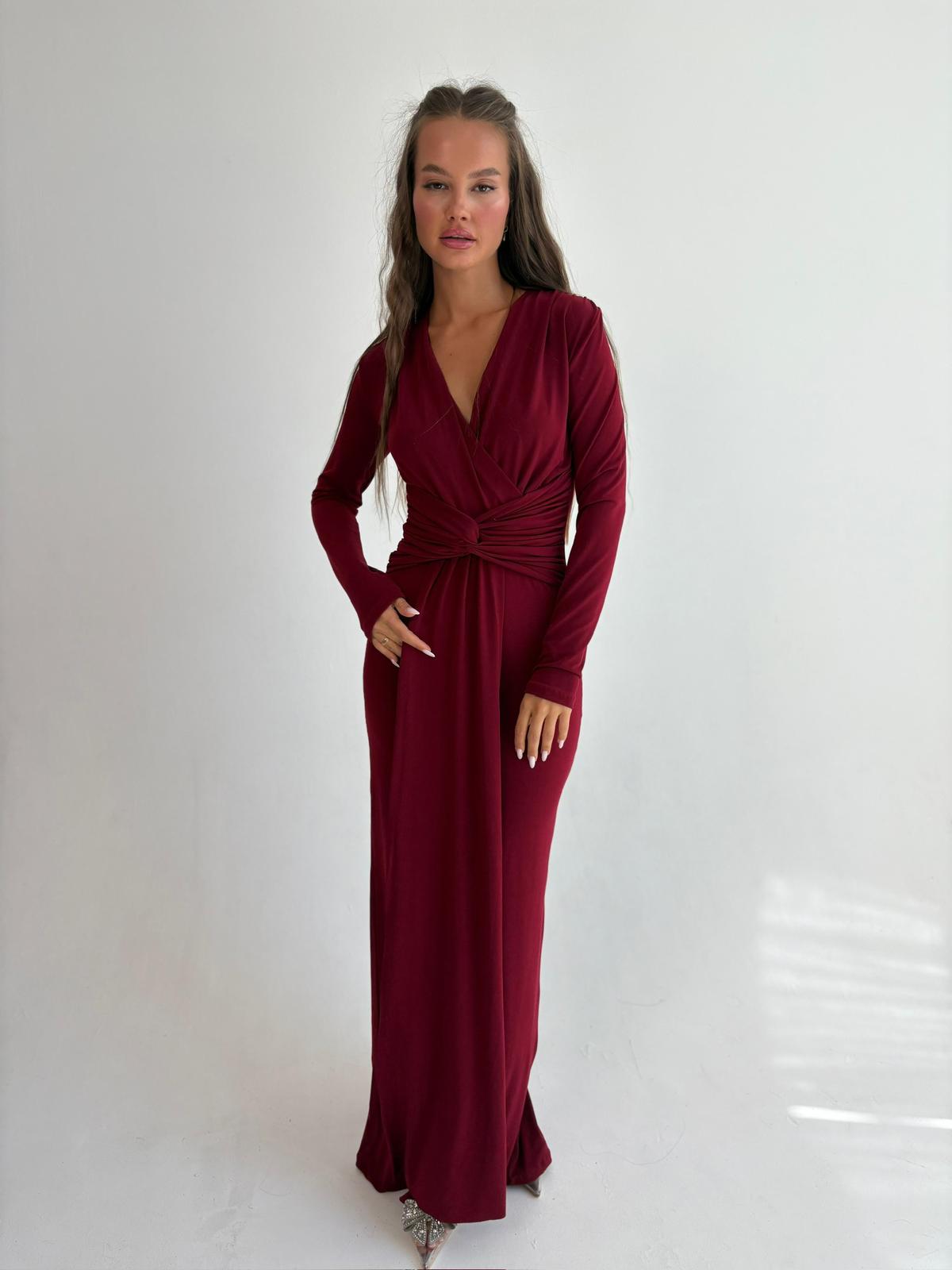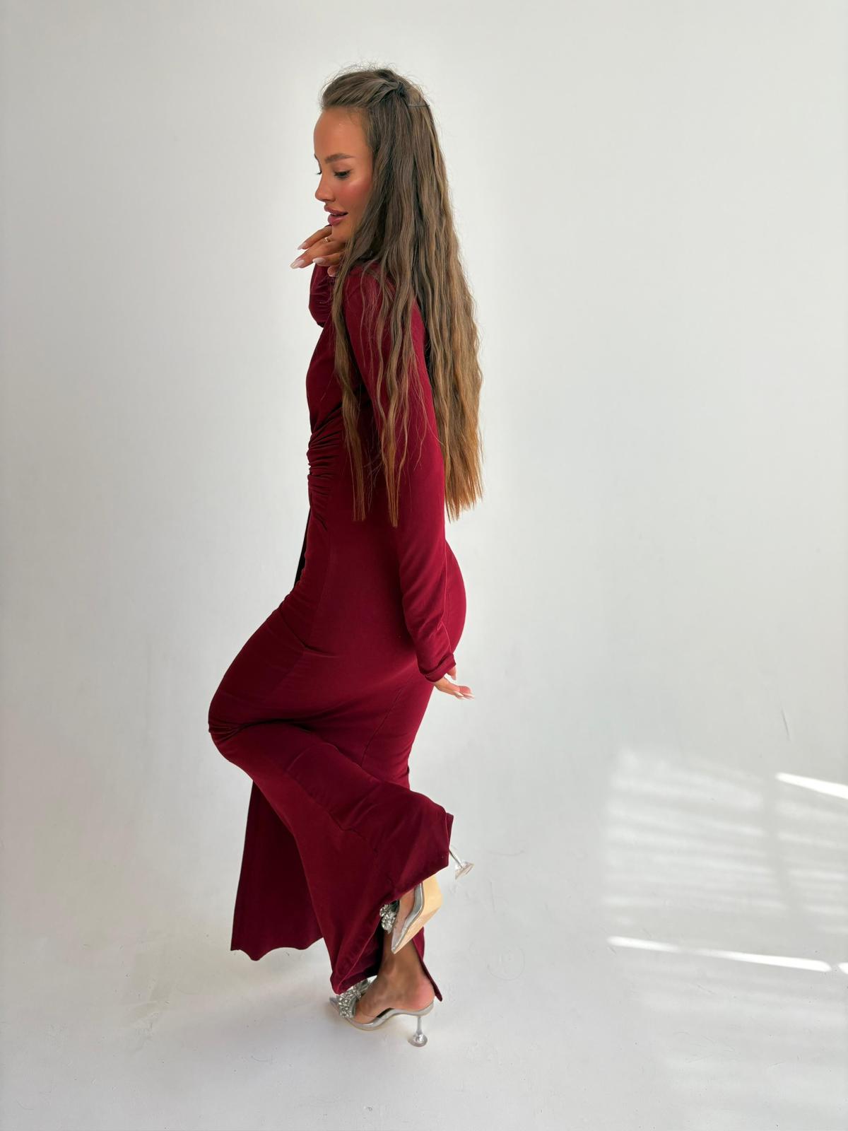 שמלת ערב מקסי מבד לייקרה, צווארון בצורת V, שרוולים ארוכים, שסע גב השמלה למטה, רוכסן ניסתר בגב השמלה. השמלה מגיעה במידות S/M/L/XL/XXL ומתאימה עד למידה 46-48/50.