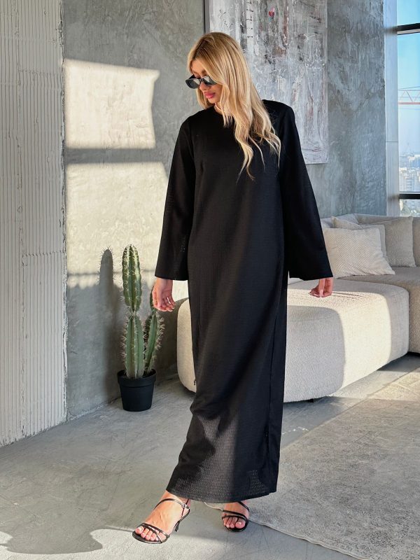 שמלת מקסי מעטפת וולן שחור