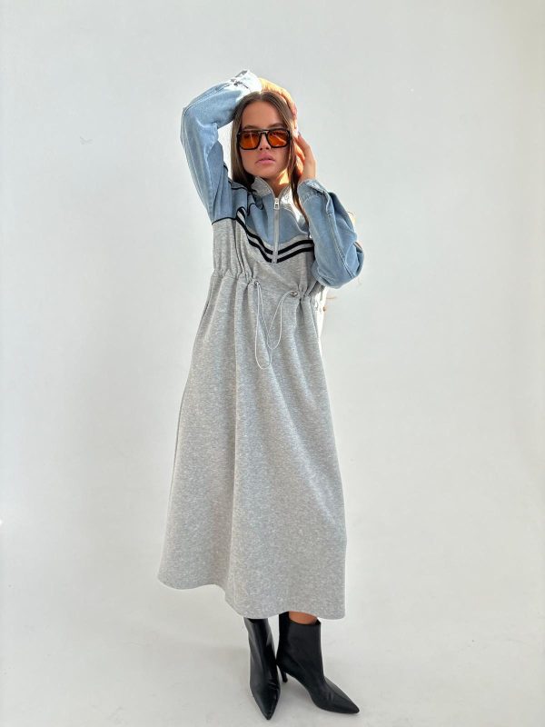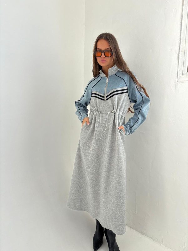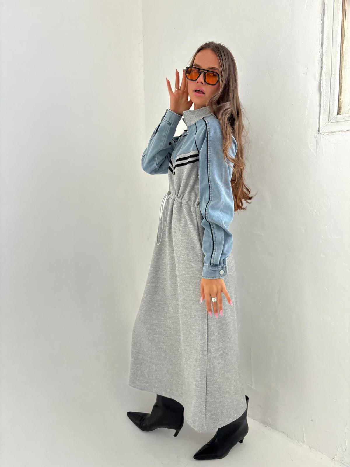 שמלת מקסי בגיזרת אובר סייז, שרוולים ארוכים מג'ינס שטוף, כיסים נסתרים, גומי פנימי במותן השמלה אם אפשרות להקטנה/הגדלה של השמלה, צווארון גבוהה, רוכסן קדמי באזור החזה. השמלה מגיעה במידות M/L ומתאימה עד למידה 44-46/48.