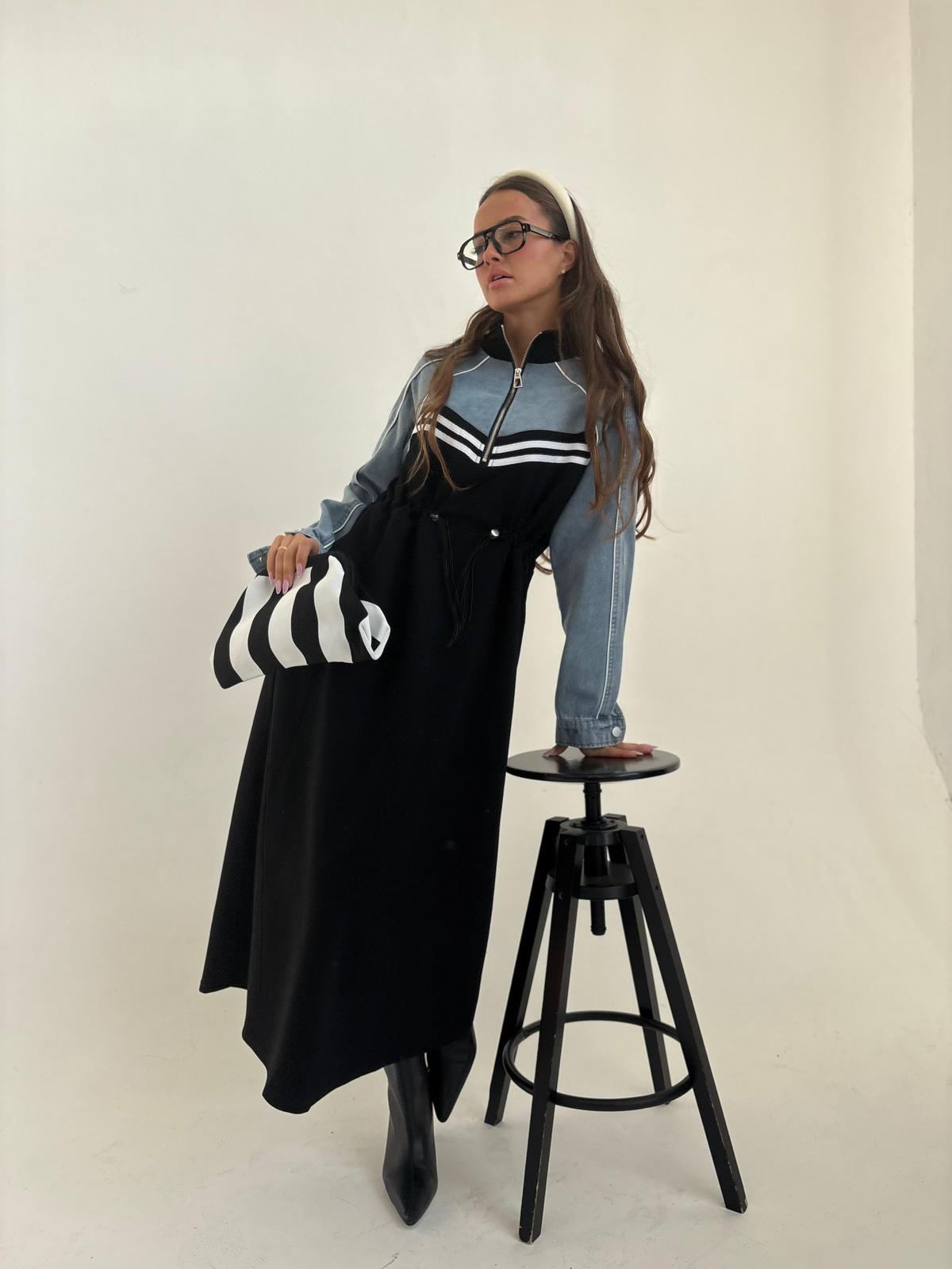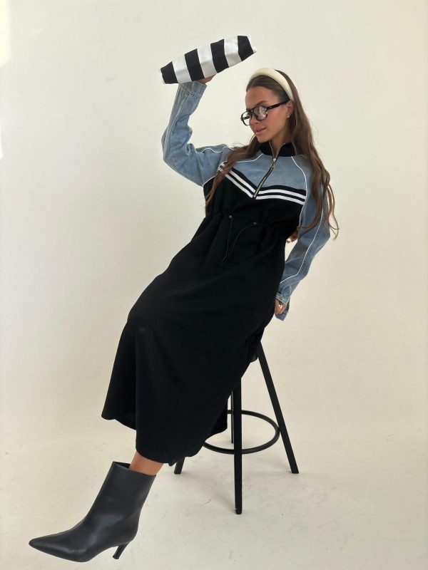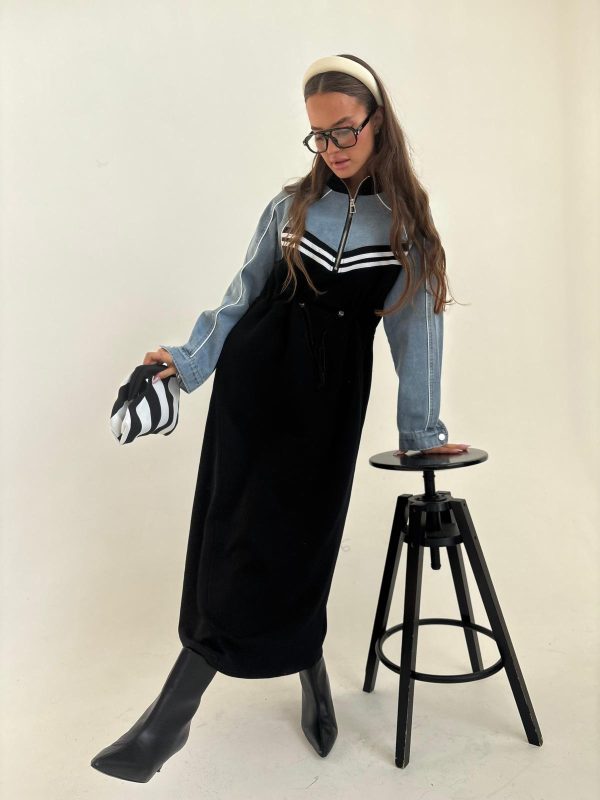 שמלת מקסי בגיזרת אובר סייז, שרוולים ארוכים מג'ינס שטוף, כיסים נסתרים, גומי פנימי במותן השמלה אם אפשרות להקטנה/הגדלה של השמלה, צווארון גבוהה, רוכסן קדמי באזור החזה. השמלה מגיעה במידות M/L ומתאימה עד למידה 44-46/48.