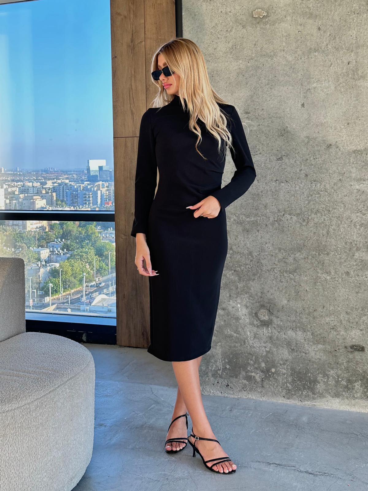 שמלת מקסי מעטפת וולן שחור