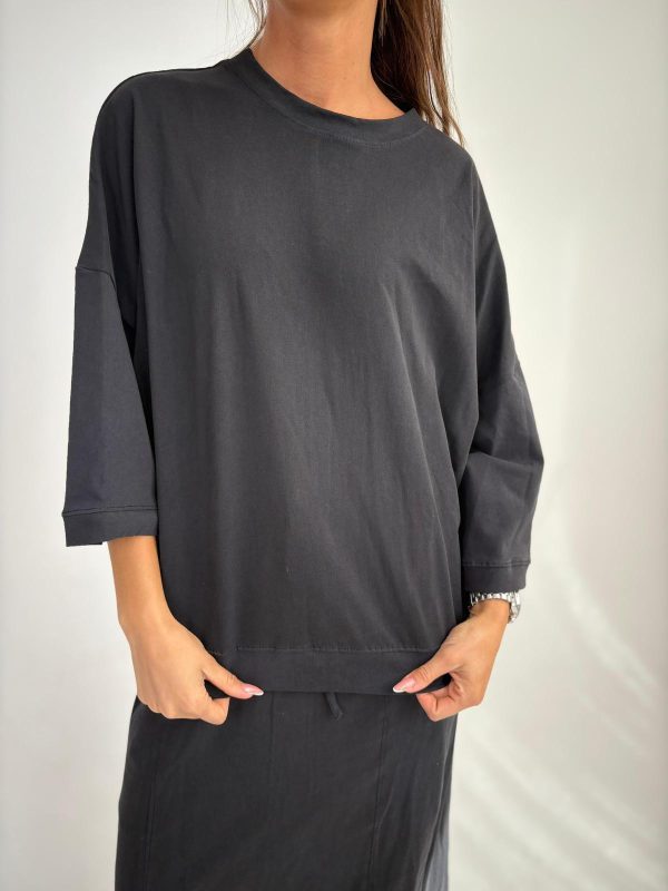 חולצה מבד סריג מעבר, מבד לייקרה נמתח , צווארון ניקי עגול שילוב, שרוולים באורך 3/4, שילוב מנג'ט בידיים ובחולצה. החולצה מגיעה במידה אחת ONE SIZE ומתאימה עד למידה 42-44.
